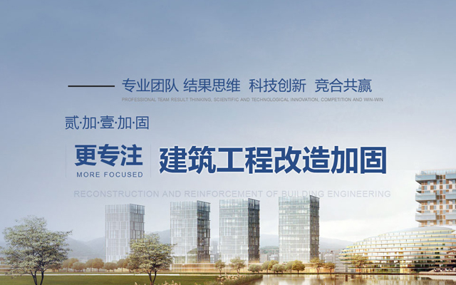 貳加壹 解決方案專業(yè)從事建筑工程改造加固技術研究及相關產品開發(fā)的 產業(yè)的公司 提供專業(yè)的加固咨詢、加固方案設計、工程施工服務 。
